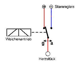 das stromlose Herzstück der Weiche muss an die Fahrspannung